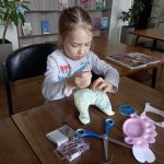 Діти знайомились з книжками зі святкового декору та дізнавались, які бувають види крашанок. Надихнувшись барвистими картинками, маленькі відвідувачі створювали святкові яйця в різних техніках – розпис фарбами, декупаж, ліпка з пластиліну тощо. Також завдяки старанності діток серед декору з’явились вироби з тканини – м’якенька курка та гарненькі серця. Не оминули увагою й розмальовки, в результаті чого бібліотеку прикрасили яскраві малюнки. В майстерні панувала атмосфера тепла і натхнення.