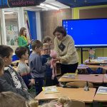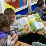 Учні гралися, спілкувались, переглядали яскраві сучасні українські книжки, дивились навчальний мультфільм. Знайомились з правилами, за якими живе і працює бібліотека. Кожен отримав власну книжечку в подарунок – патріотичні розмальовки від видавництва «Кристал Бук».