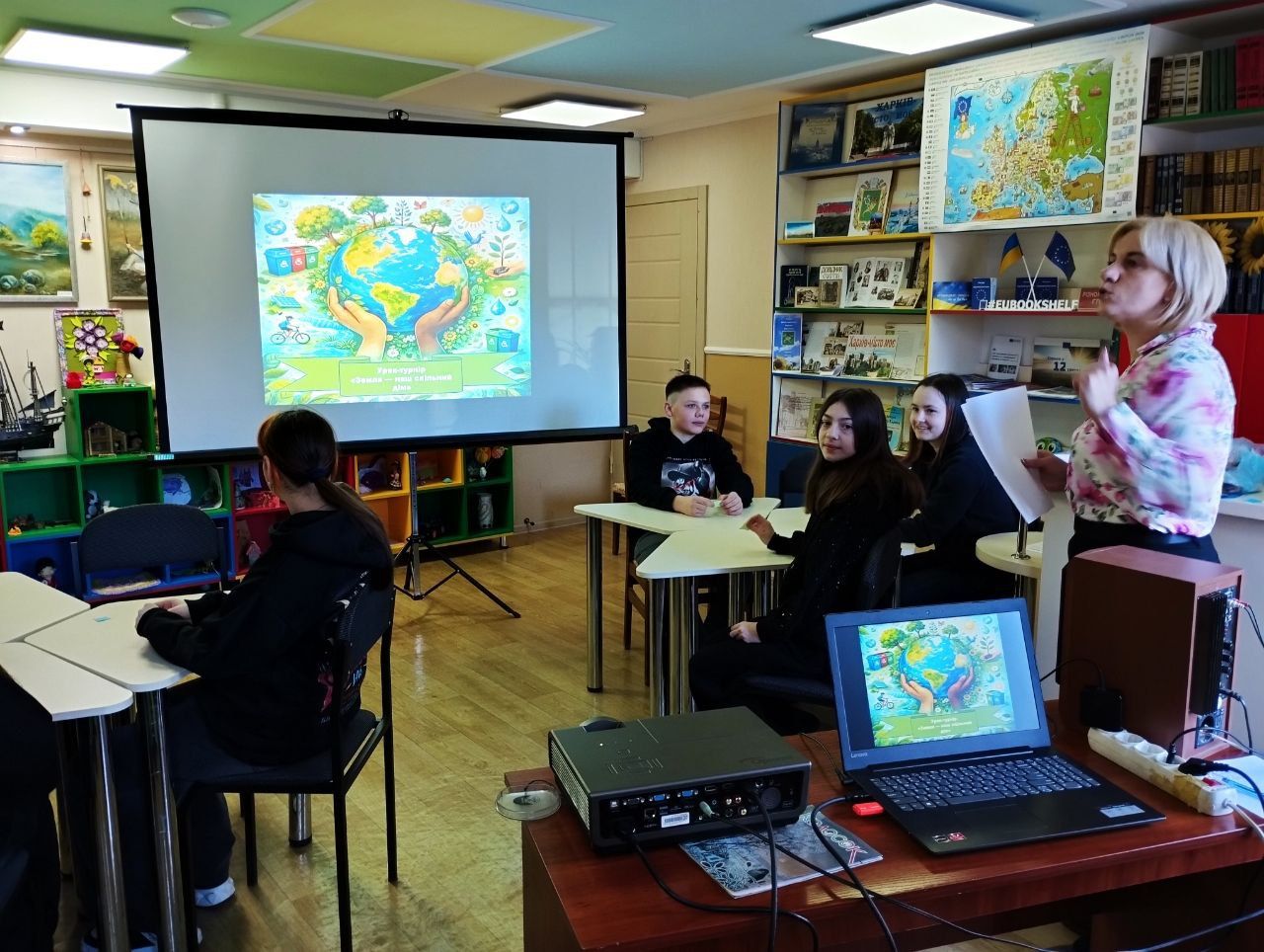 У межах проєкту «Зелена бібліотека» у бібліотеці-філії №42 для дітей ЦБС Немишлянського району відбувся еко-захід «Земля — наш спільний дім», на який завітали учні 6-го класу Харківської гімназії №145