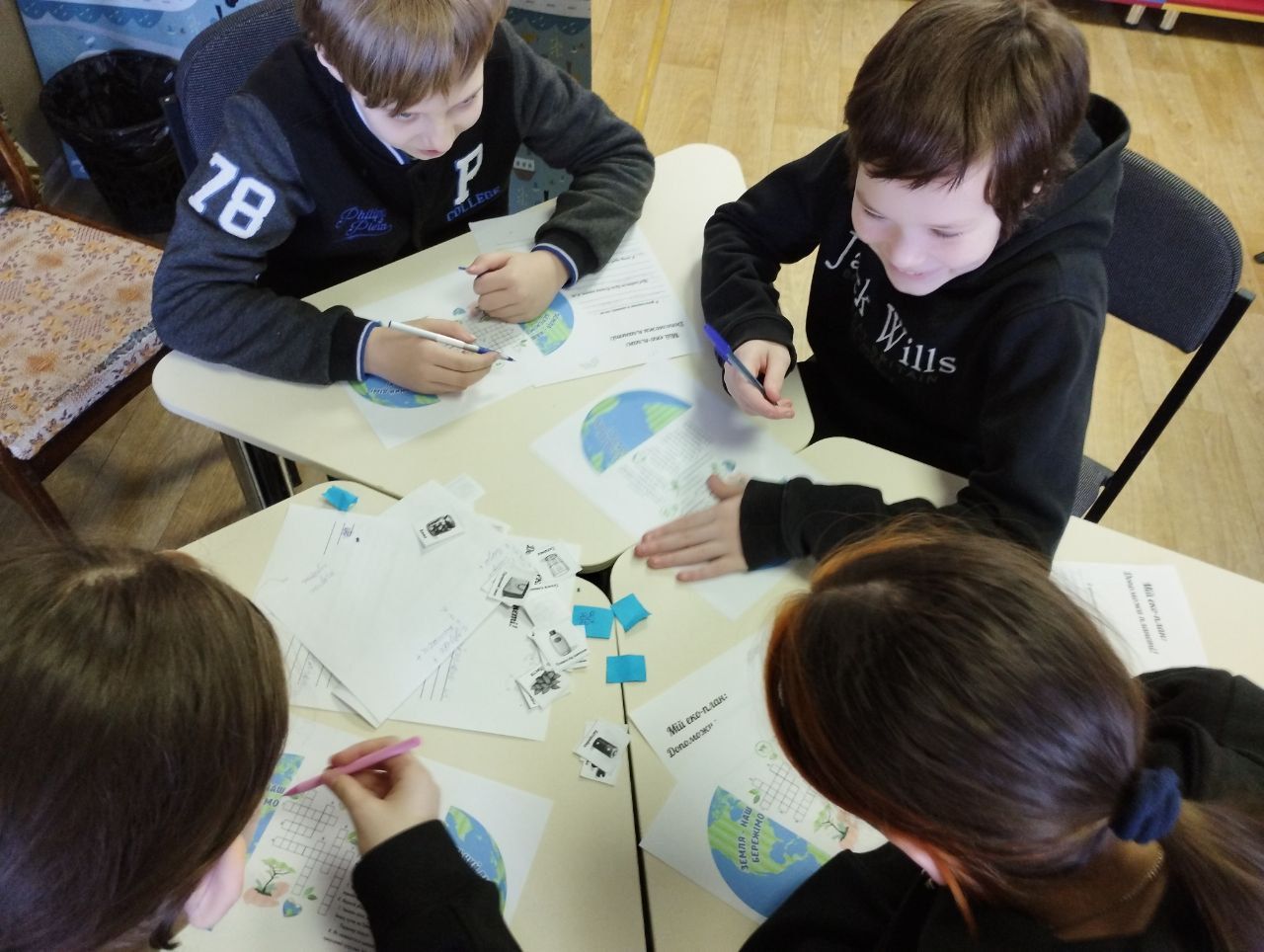 Діти взяли участь у вікторині, та дізналися про сортування сміття, багатство Світового океану, різноманіття живого світу, і прості щоденні кроки, щоб бути дружніми до довкілля. Також вони створювали яскраві лепбуки із зображенням нашої планети, кросвордами та наліпками — як нагадування про те, що природа унікальна і потребує нашої турботи та захисту.