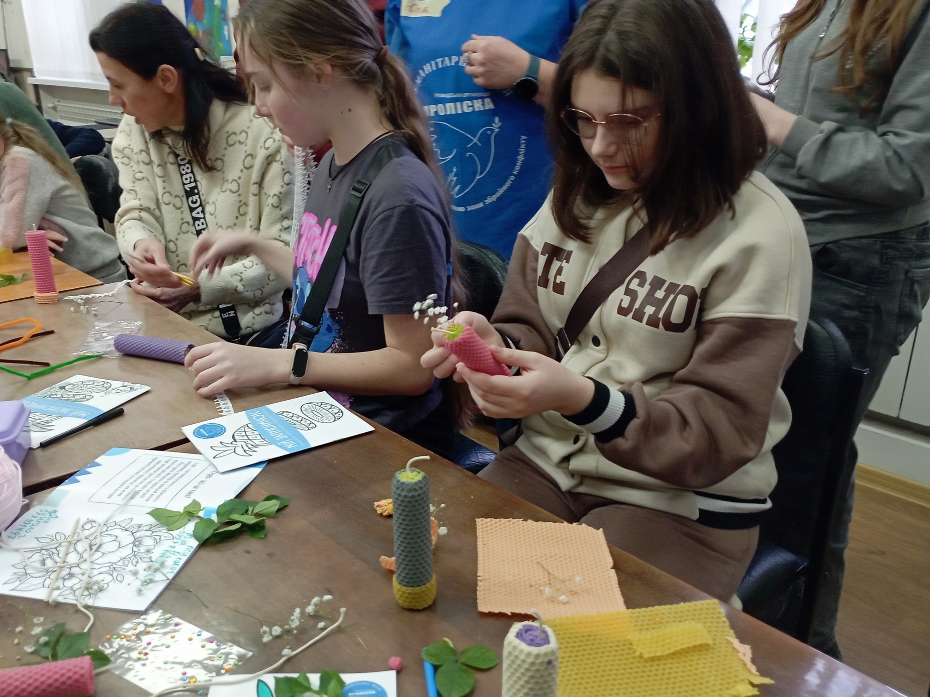 Аромат меду, шурхіт мережива та щирі усмішки учасників перетворили звичайний майстер-клас на справжнє свято весни. Кожна свічка, скручена власноруч, стала маленьким шедевром, прикрашеним сухоцвітами, мереживом та щирими побажаннями.