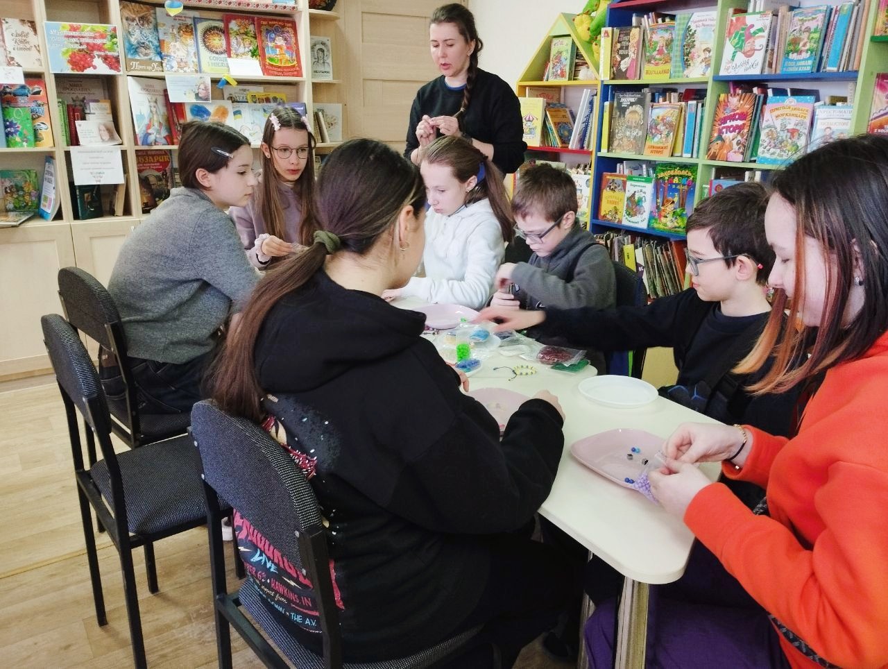 Намистини — це чарівний матеріал, з якого можна створювати дивовижні прикраси. Це не лише захоплює та дивує, а й допомагає розвивати творчий потенціал, уважність і терпіння, а також цікаво й корисно проводити дозвілля з однолітками. Майстриня із задоволенням поділилася своїми знаннями й уміннями та провела майстер-клас для всіх охочих опанувати техніку виготовлення прикрас із бісеру та намистин.