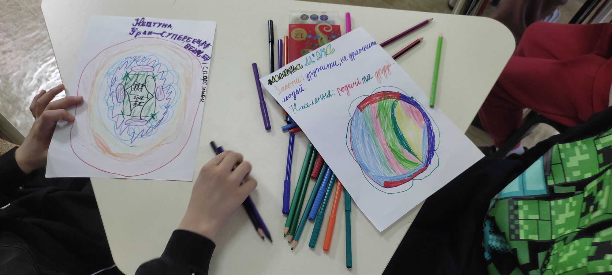 Учасники створювали власні планети: вигадували назви, мешканців, лідерів і навіть способи подорожі до них. А потім об’єднали їх у спільну Галактику з побажаннями для майбутніх поколінь.