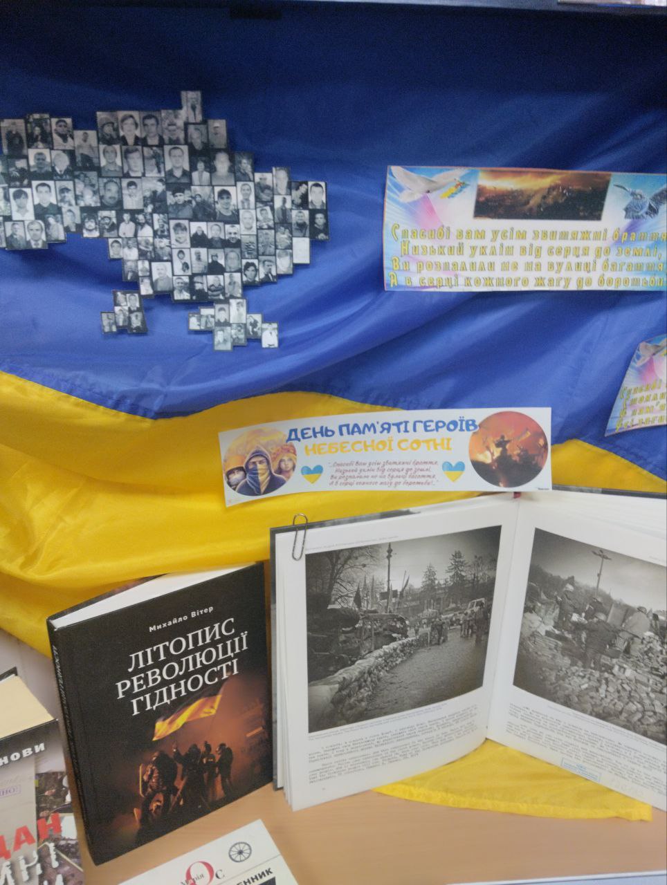 Представлені на виставці книги, статті та документальні матеріали розповідають про події Революції Гідності, про мужність і незламність тих, хто став символом боротьби за правду та незалежність. Кожна сторінка — це нагадування про високу ціну свободи та силу людського духу. Герої Небесної Сотні назавжди залишаться у наших серцях як приклад патріотизму, відваги та любові до Батьківщини.