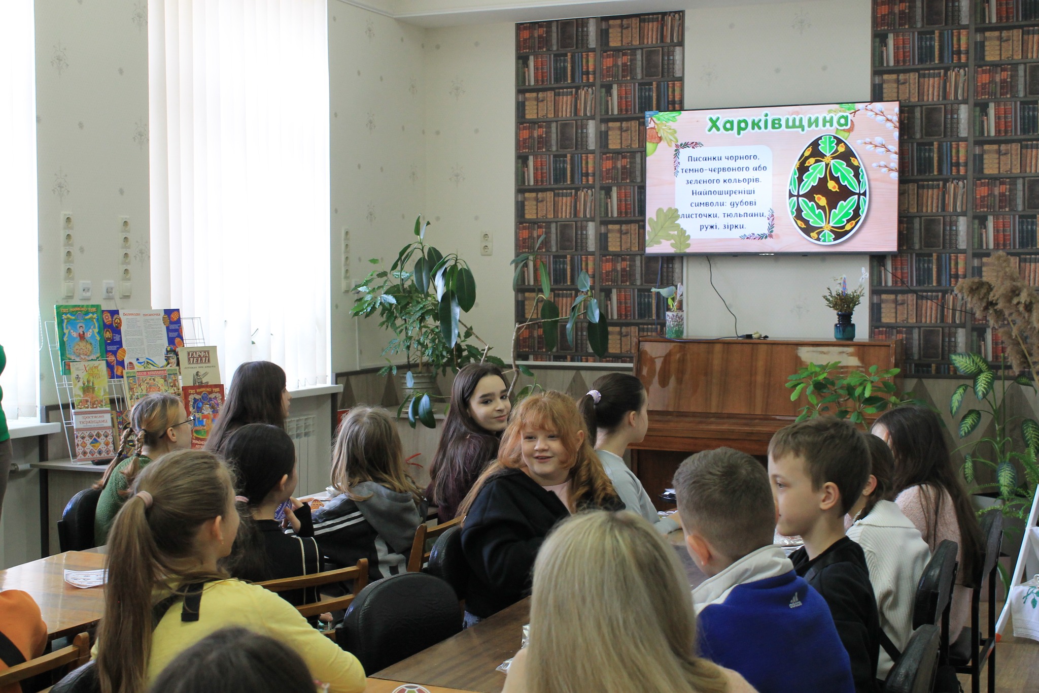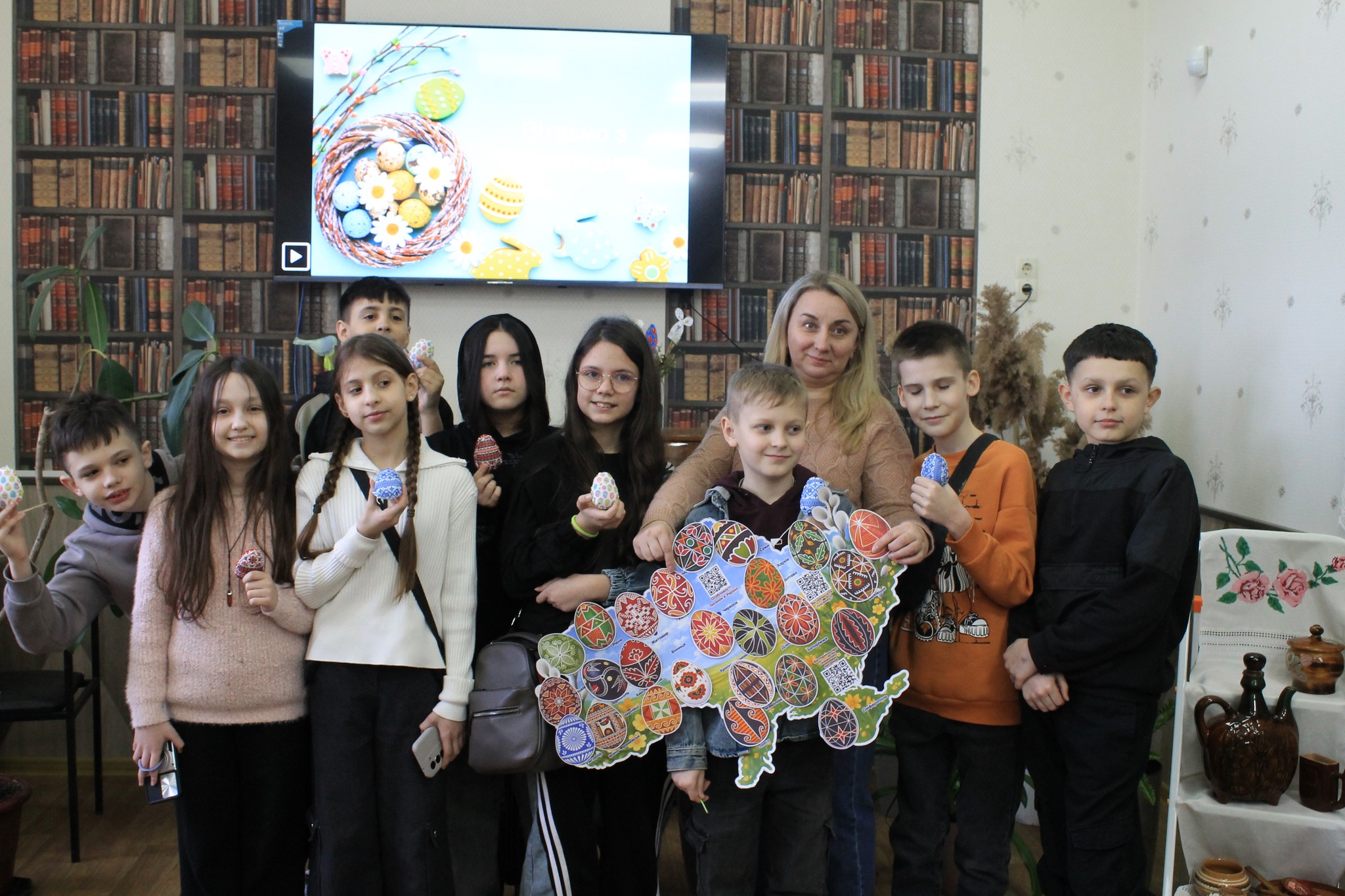 Бібліотекарі підготували захопливу презентацію, під час якої присутні дізналися про історію свята, його глибокі традиції в Україні та цікаві особливості святкування у різних куточках світу. Діти створили власні писанки — яскраві, оригінальні і зроблені з душею, та прикрасили ними карту України, вивчаючи особливості різних регіонів. Було не лише пізнавально, а й дуже натхненно! Завершилася зустріч гарним настроєм та щирими усмішками.