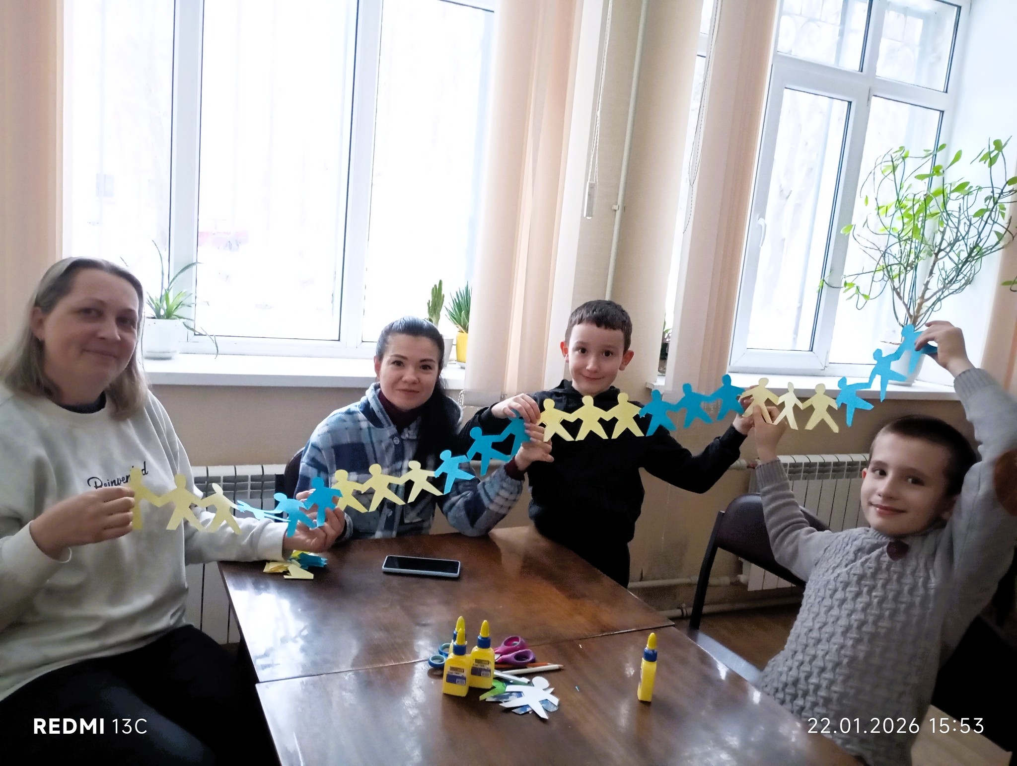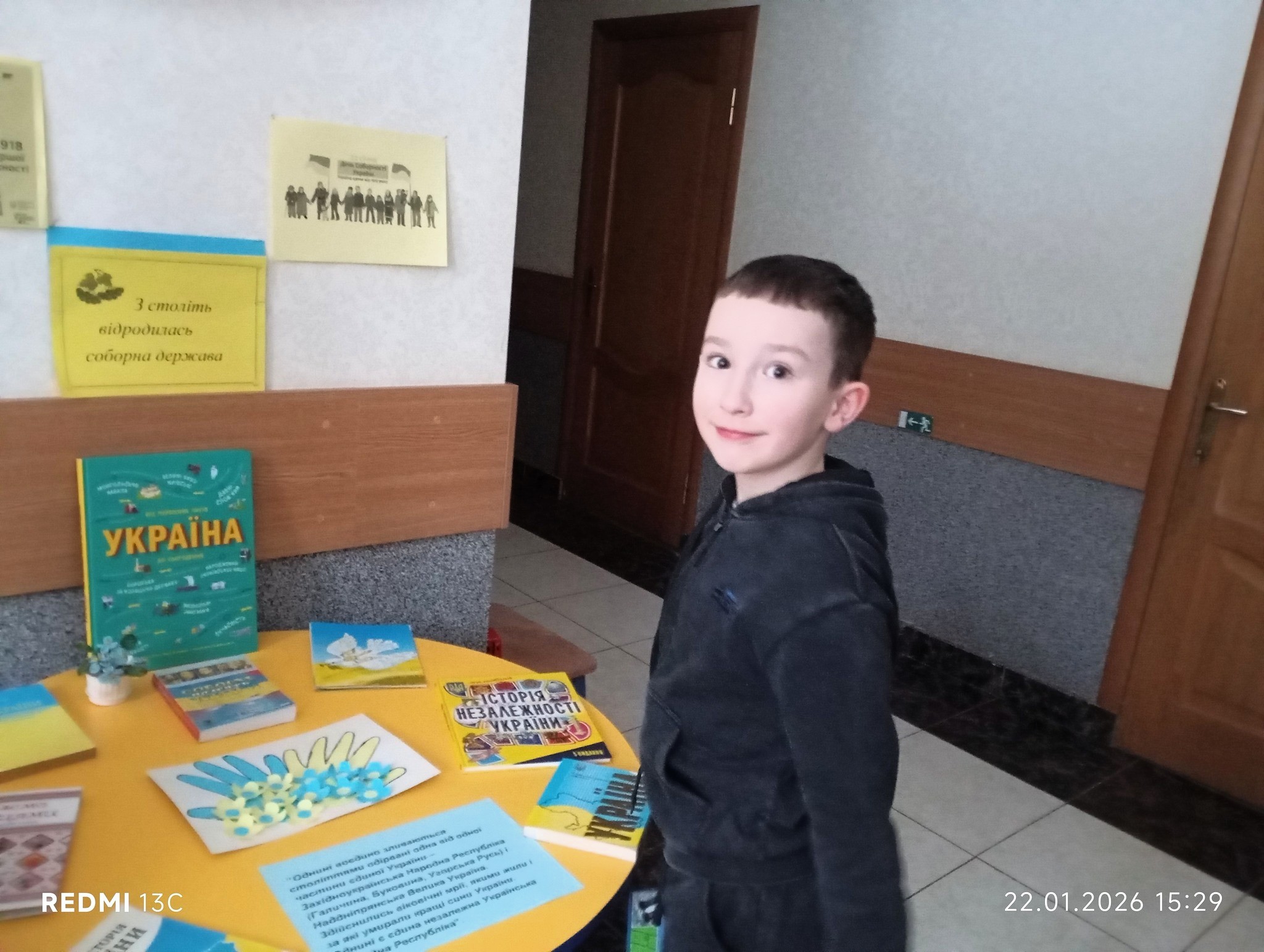 Цей день ще більше загартував нашу віру в те, що коли ми разом — ми незламні. Діти переглянули відео про історію Соборності. Під час пізнавальної вікторини згадували визначні дати та постаті, що будували Українську Державу. Завершили зустріч творчим майстер-класом «Ланцюжок єднання». Кожна ланка, створена власними руками — це символ нашого міцного зв’язку, який не розірвати жодним викликам. Бібліотека дякує кожному, хто долучився!