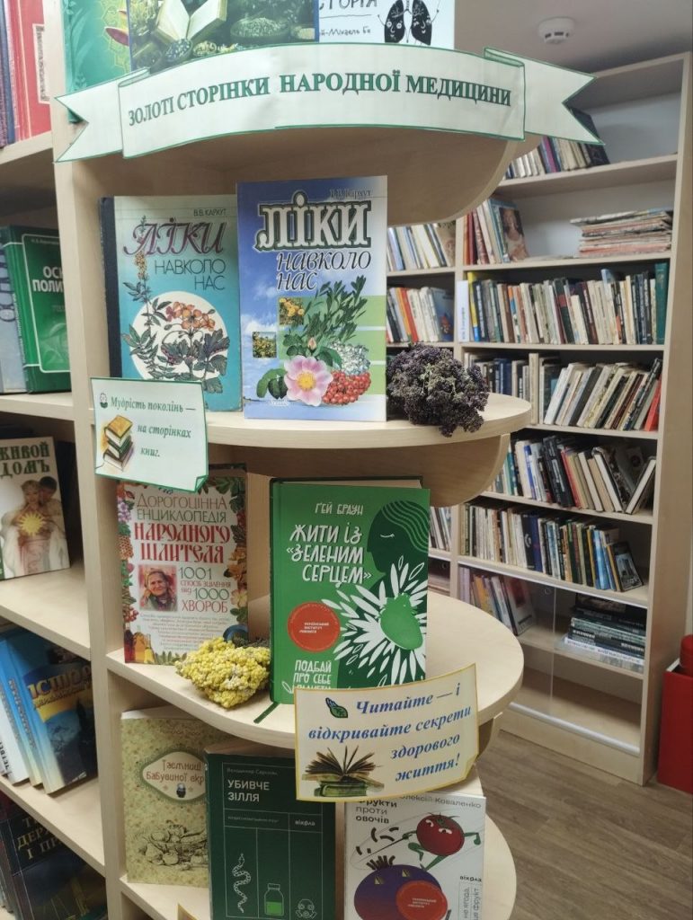 В рамках проекту «Зелена бібліотека» у Центральній бібліотеці ЦБС Немишлянського району працює книжкова виставка «Золоті сторінки народної медицини» присвячена Всесвітньому дню здоров’я.